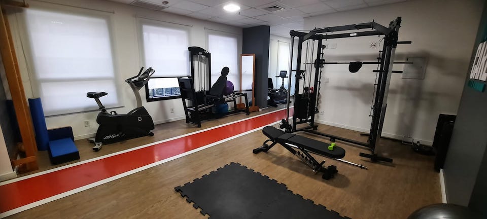 Contamos com duas salas amplas e iluminadas, priorizando o acolhimento e bem estar para nossos pacientes. Cada ambiente é devidamente equipado com macas e aparelhos de academia. Além disso, contamos com um escritório para realização da avaliação inicial e atendimentos que necessitem de mais privacidade.
